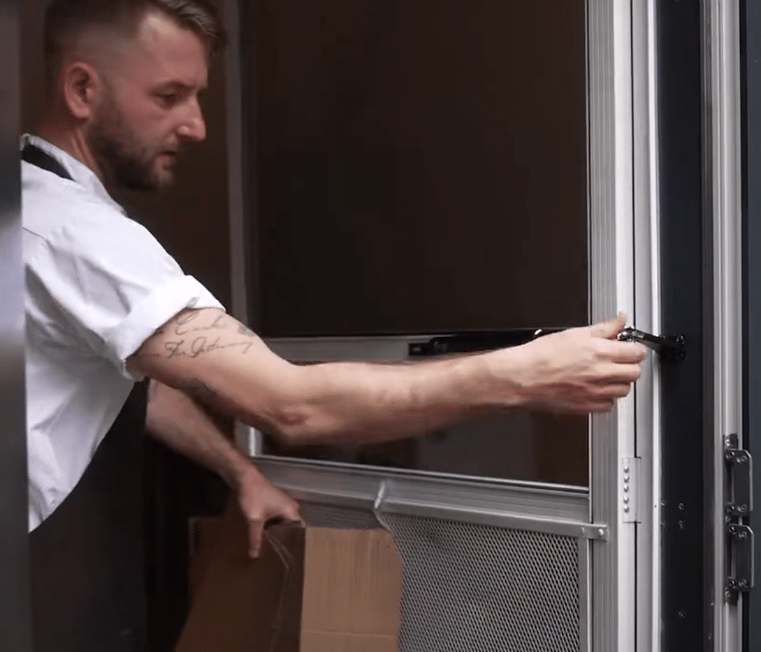 Hos Madklubben har vi leveret en solid dørløsning, som holder til at blive åbnet og lukket mange gange daglige, og sikrer køkkenet mod insekter.